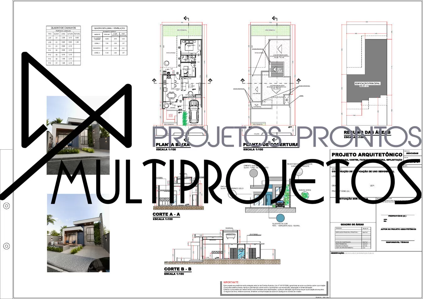 Nossos projetos são elaborados seguindo normas técnicas, mas cada prefeitura tem exigências específicas. Recomendamos que um profissional local faça as adequações e o protocolo do projeto para aprovação na sua cidade.